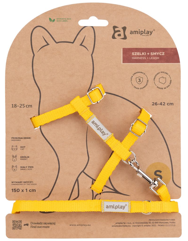 Stylový set postroje a vodítka Amiplay Samba v zářivě žluté barvě je ideální pro každodenní procházky s vaší kočkou. Lehký, pohodlný a elegantně barevný – pro bezpečný pohyb i maximální komfort vašeho mazlíčka.