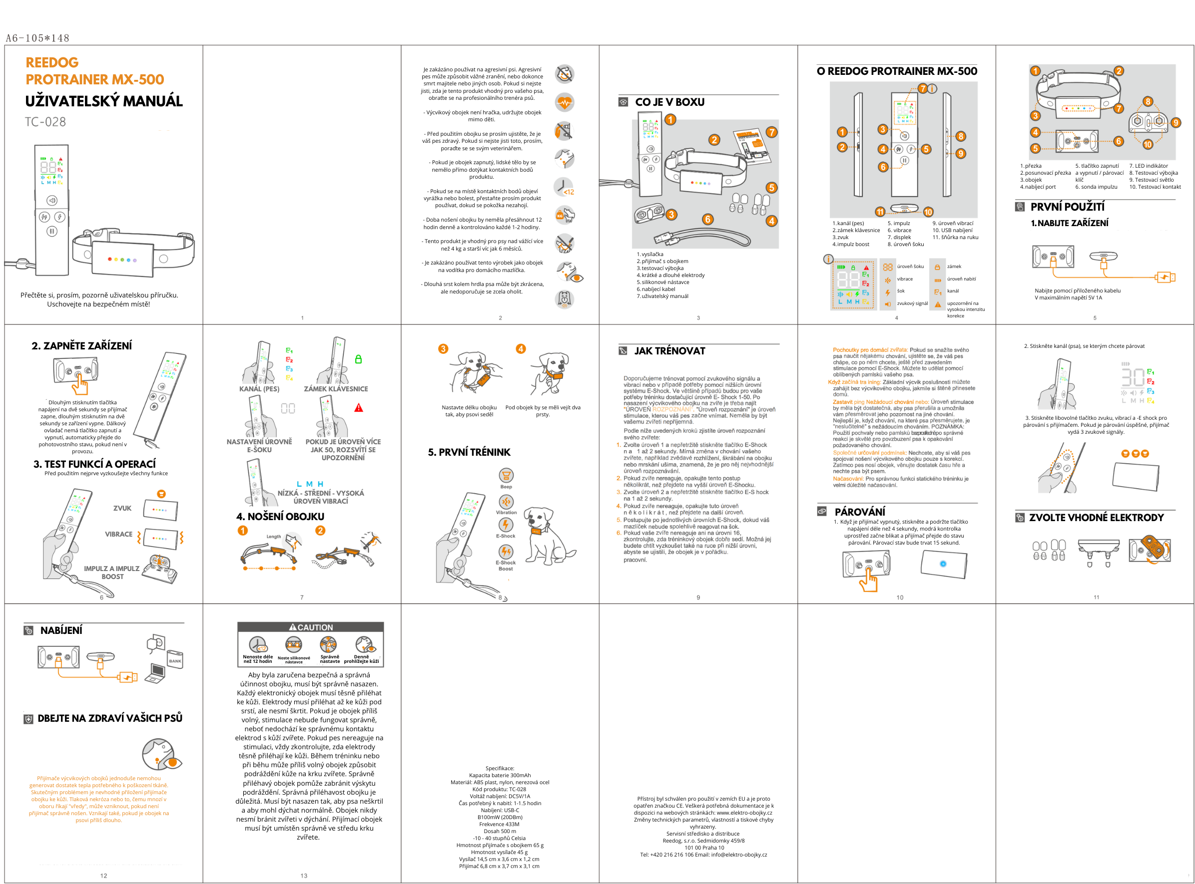 Reedog ProTrainer MX-500 je vhodný pro trénink až 4 psů všech plemen a velikostí najednou. Barevný LCD displej nabízí 4 druhy korekce, zvuk, vibrace v nastavitelné intenzitě a impulz v 99 úrovních intenzity, mimo jiné v zesílené verzi boost. Dosah až 500 metrů (v terénu bez překážek) vám bude stačit na všechny procházky do přírody i do města. Má certifikát vodotěsnosti IPX6, takže je vhodný i do deště nebo sněhu. Vysílačka vás překvapí s až 60 denní výdrží baterie