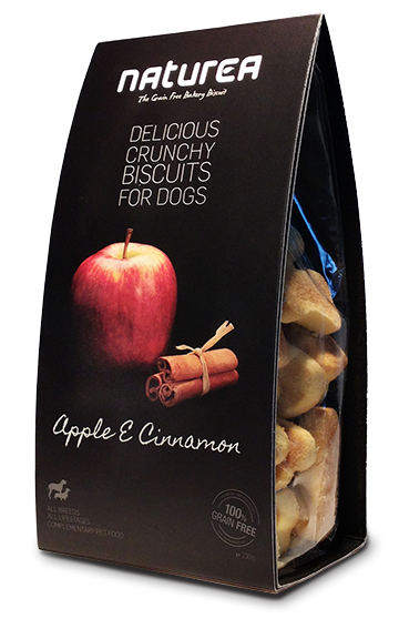 Psí sušenky, které může jíst i páníček. Sušenky Naturea jsou ručně vyrobené podle typické tradice portugalské gastronomie a domácího receptu. Jsou dostupné v šesti různých příchutích a vyráběny ze stejných přísad jako naše sušenky. Bez obilovin, samozřejmě. Kombinace dvou klasických příchutí: jablko a skořice. Jedná se o přísady používané v mnoha receptech mezinárodní kuchyně, a proto mají tyto sušenky příchuť charakteristickou pro lehká jídla, avšak intenzivní a osobitou.