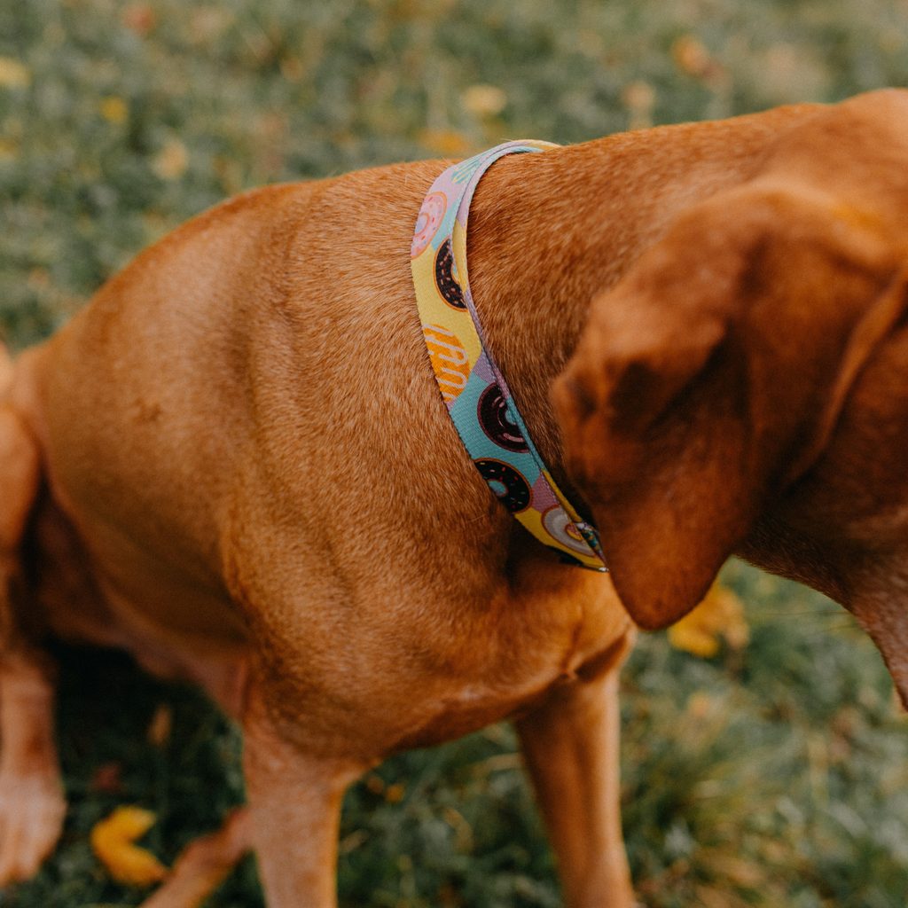 Nastavitelný obojek Be Happy s motivem Donut je pohodlný a bezpečný doplněk pro vašeho psa. Snadno se přizpůsobí velikosti krku a je vyroben z odolného materiálu, který vydrží každodenní použití.