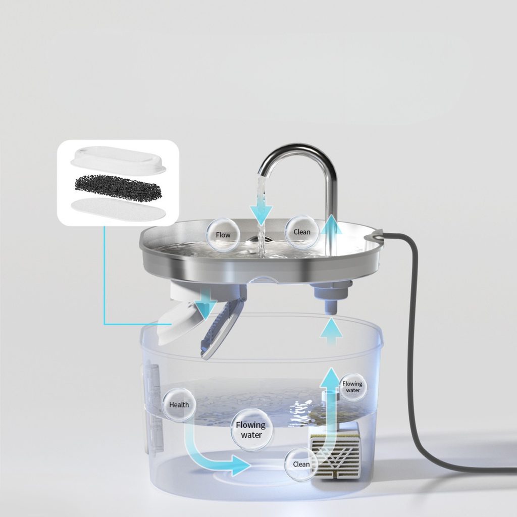 Fontána Petwant PWS-148B o objemu 2,2 l s praktickým kohoutkem nabízí tichý provoz a vícestupňovou filtraci, která zajišťuje vždy čistou a chutnou vodu pro vaše mazlíčky. Její elegantní design se hodí do každého interiéru a je ideální pro kočky a malé psy.